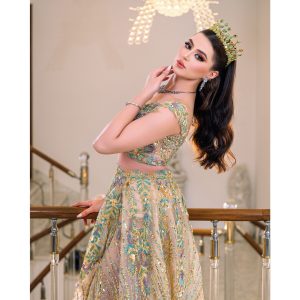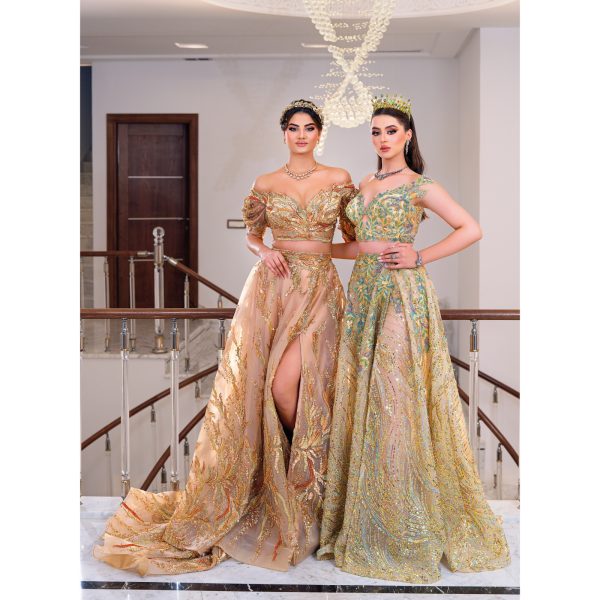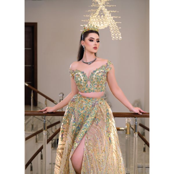 somptueuse robe orientale, composée d’une jupe et d’un corsage ornés de motifs exquis. Ce chefd’œuvre de haute couture allie élégance et tradition
